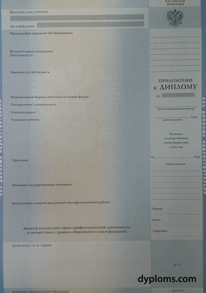 - Диплом актуального образца с официальными государственными символами и защитными элементами.